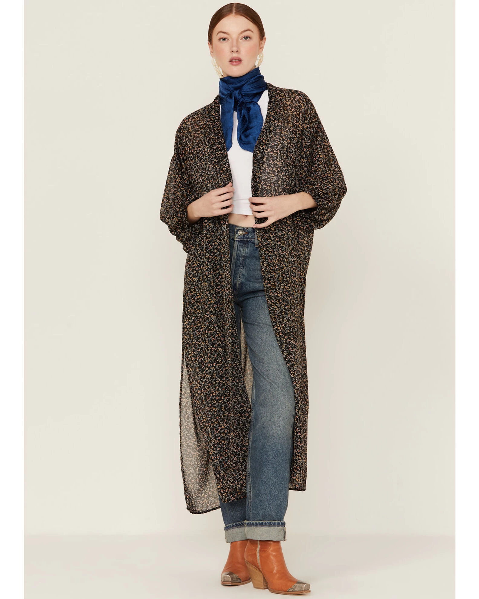 Beyond The Radar Women’s Floral Chiffon Duster Maxi Kimono