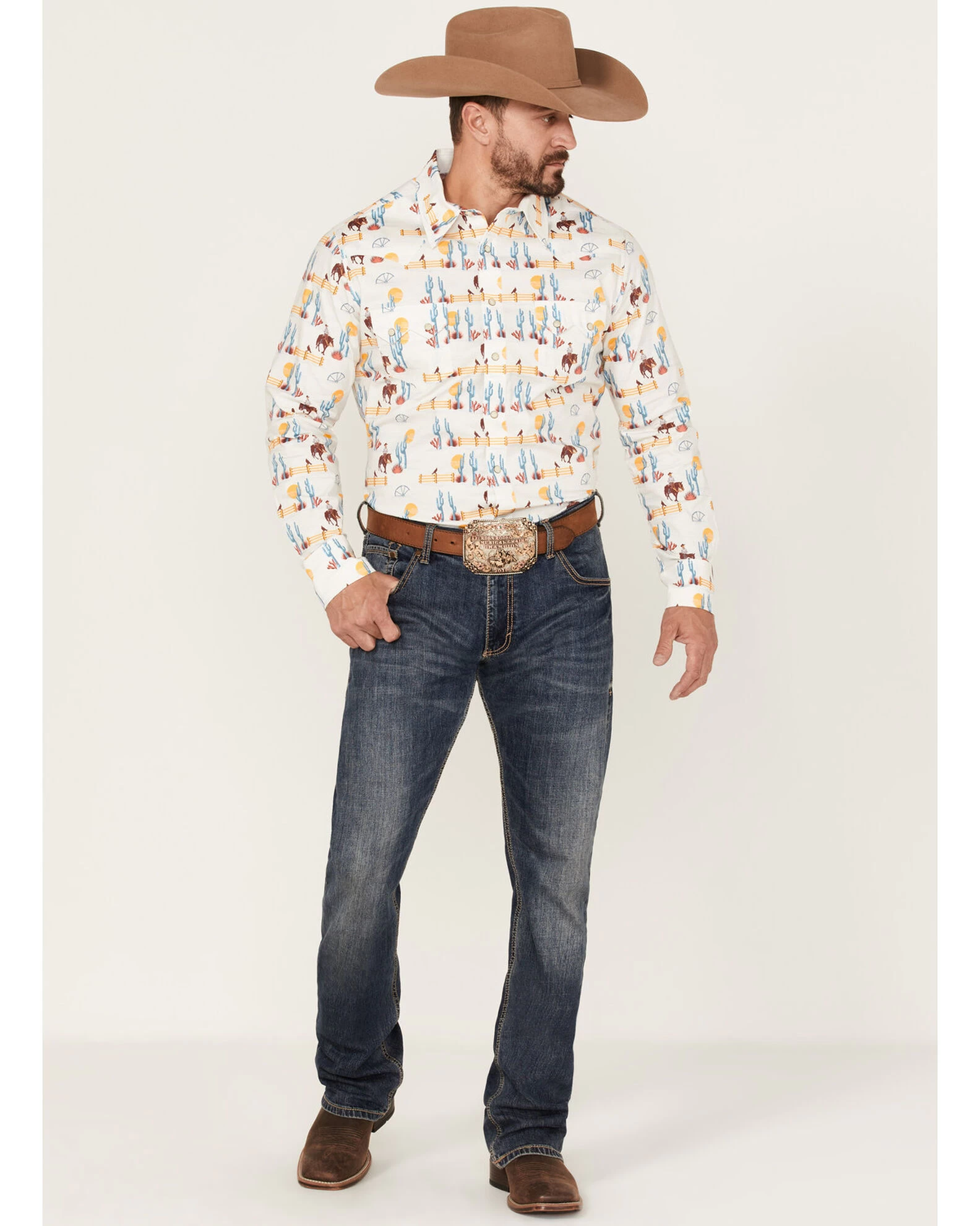 Dale Brisby Men’s All-Over Scenic Print Long Sleeve Snap Western Shirt