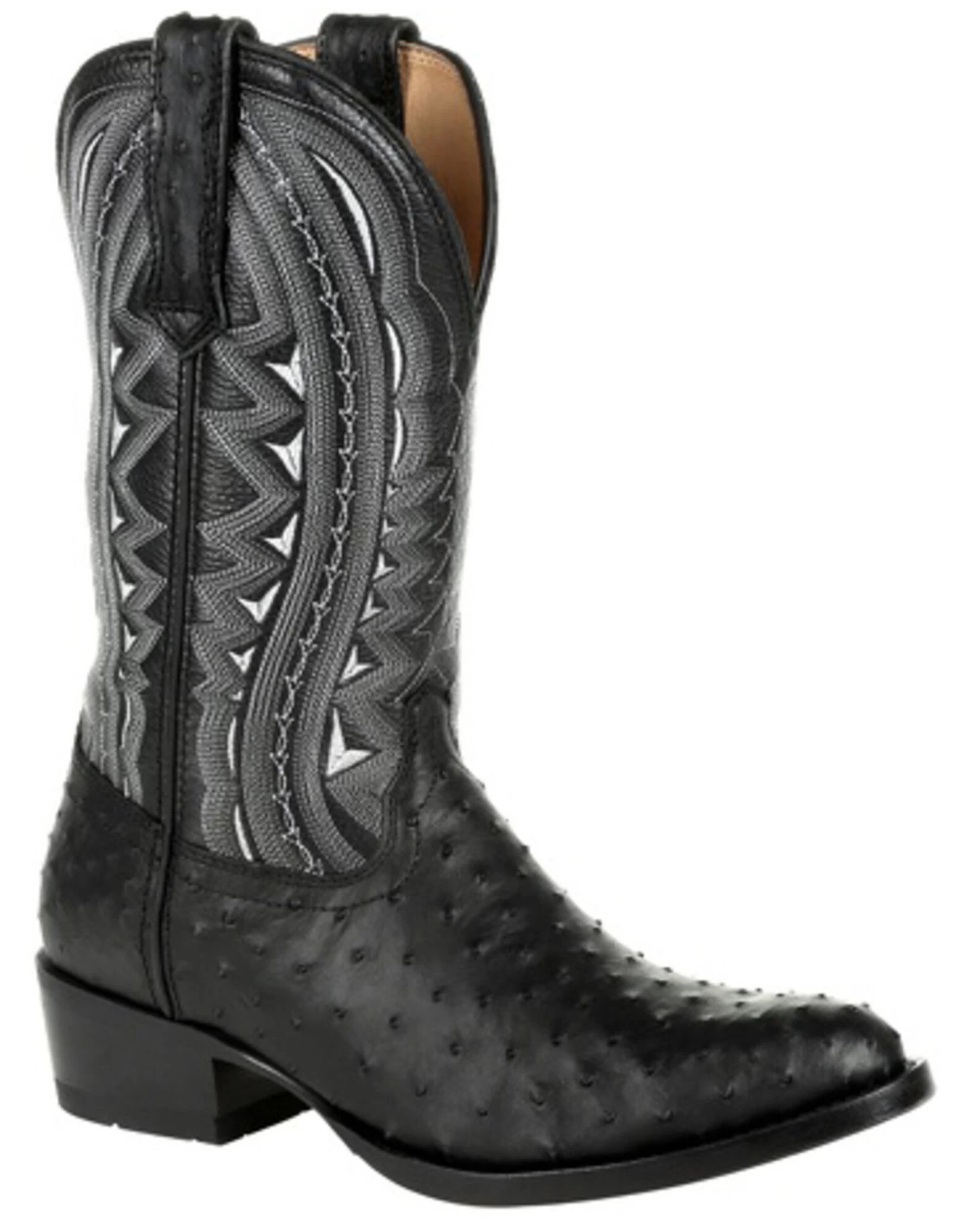 Durango Men’s Black Full-Quill Ostrich Western Boots – Round Toe