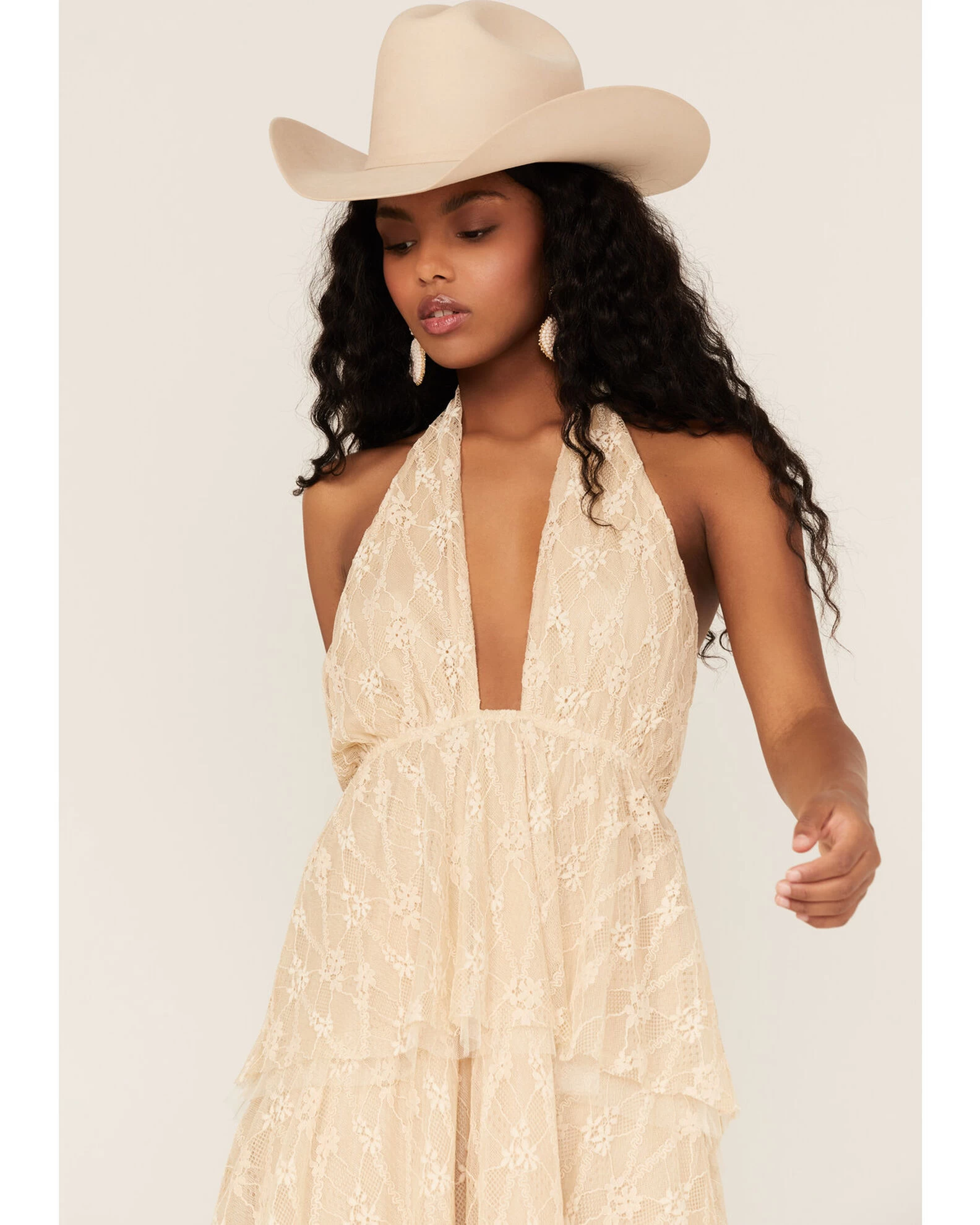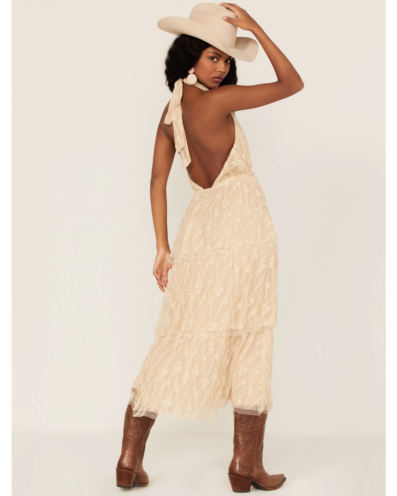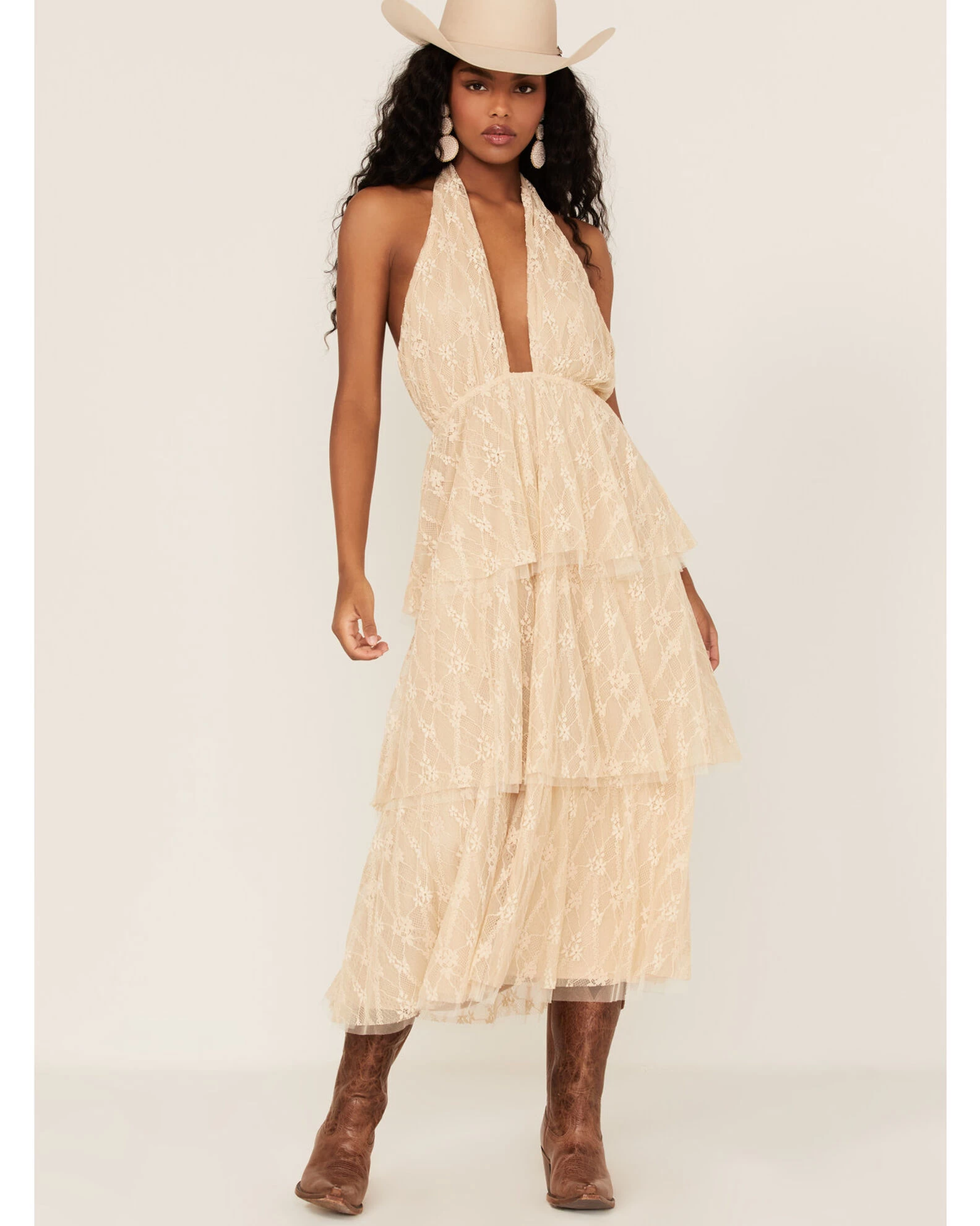 Flying Tomato Women’s Floral Lace Halter Tiered Midi Dress