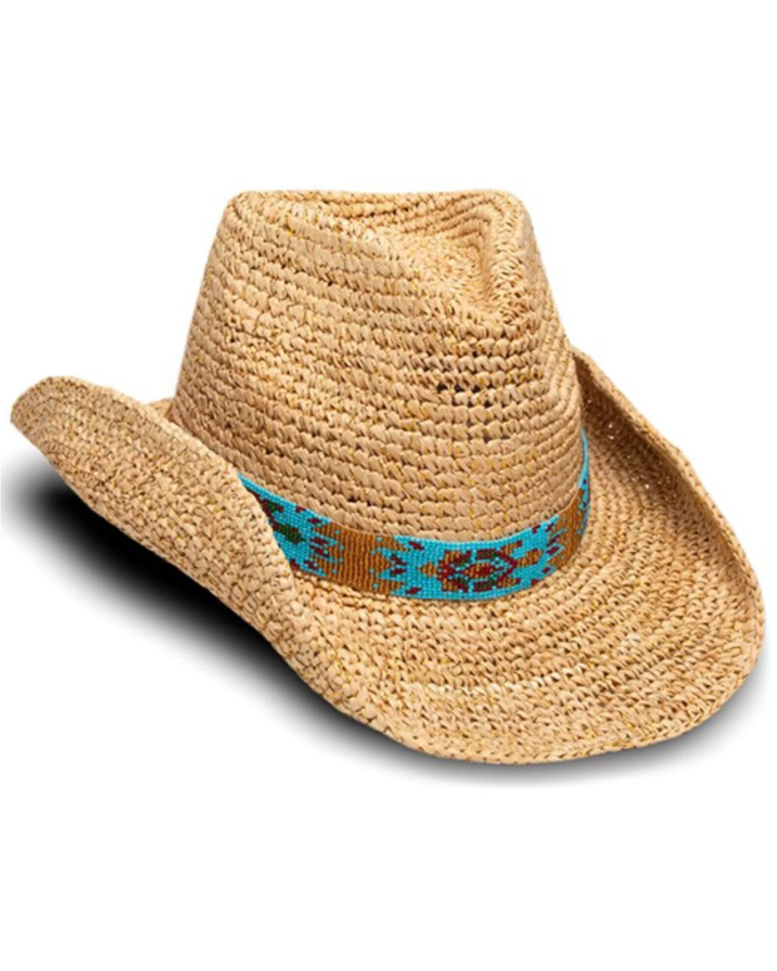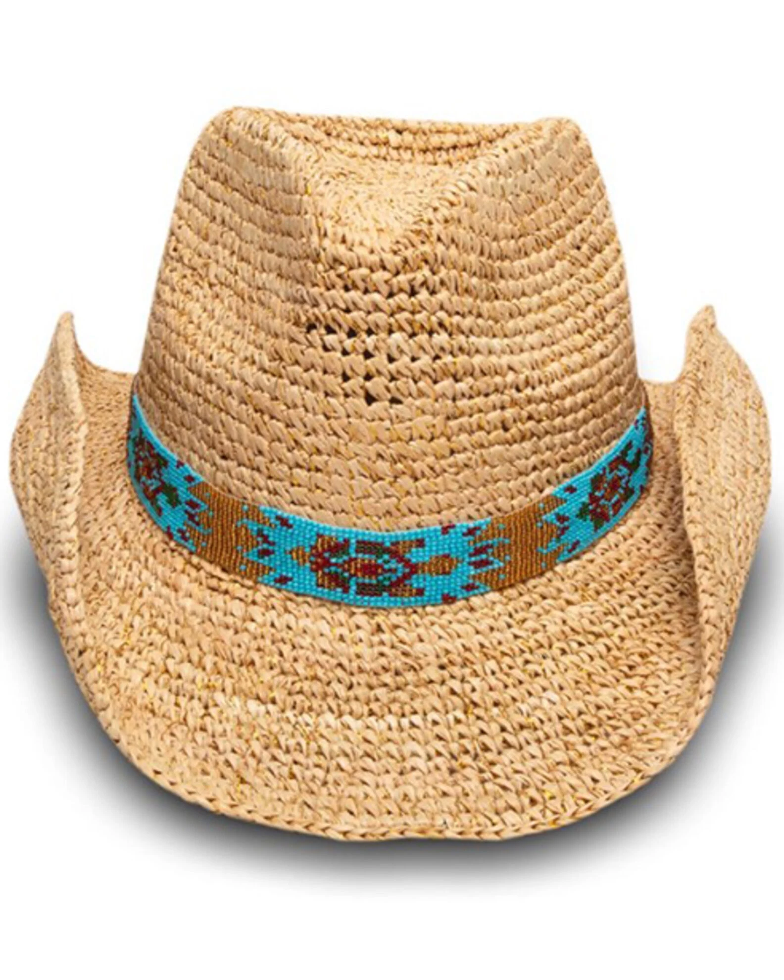 Nikki Beach Women’s Natural Mazatlan Crochet Raffia Straw Western Hat
