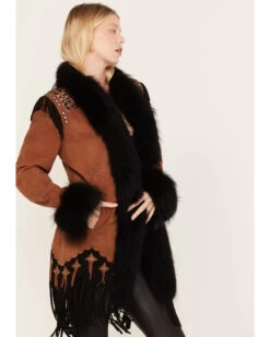 Double D Ranch Women’s Tramp Art Zip-Front Leather Suede Jacket