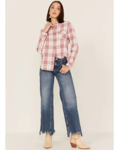 Flag & Anthem Women’s Plaid Print Chest Pocket Long Sleeve ShirtÂ