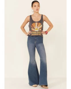 Goodie Two Sleeves Women’s Charcoal Southern Sunsets Graphic Crop Tank Top