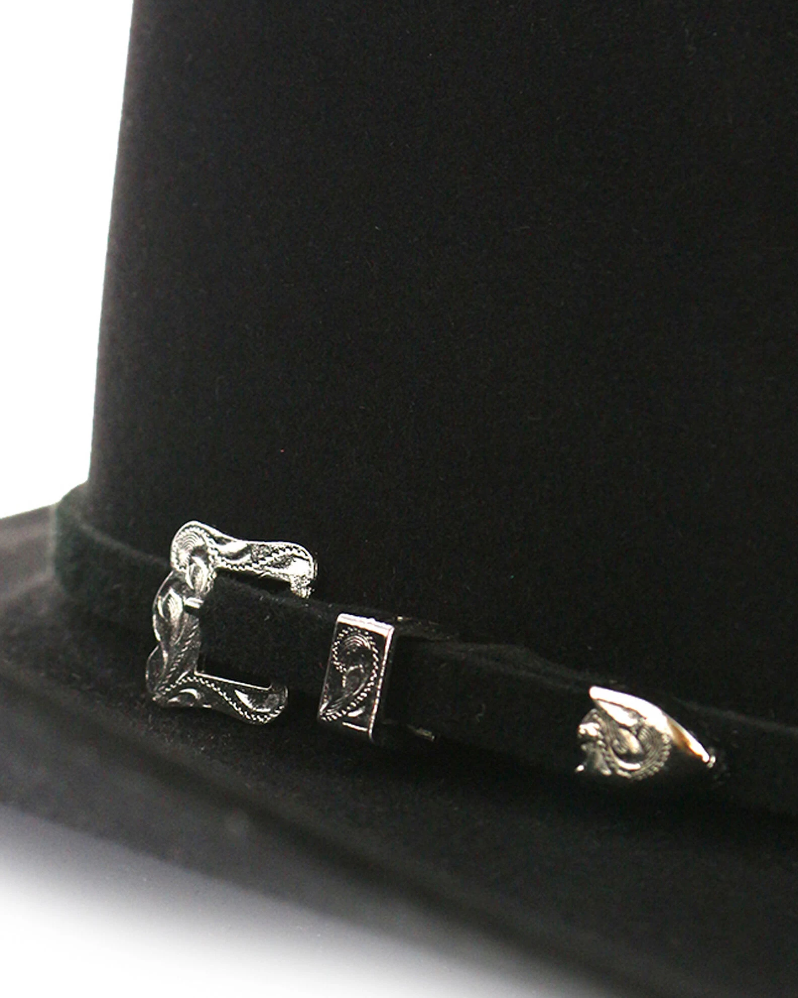 - Felt hat band with small buckle accent