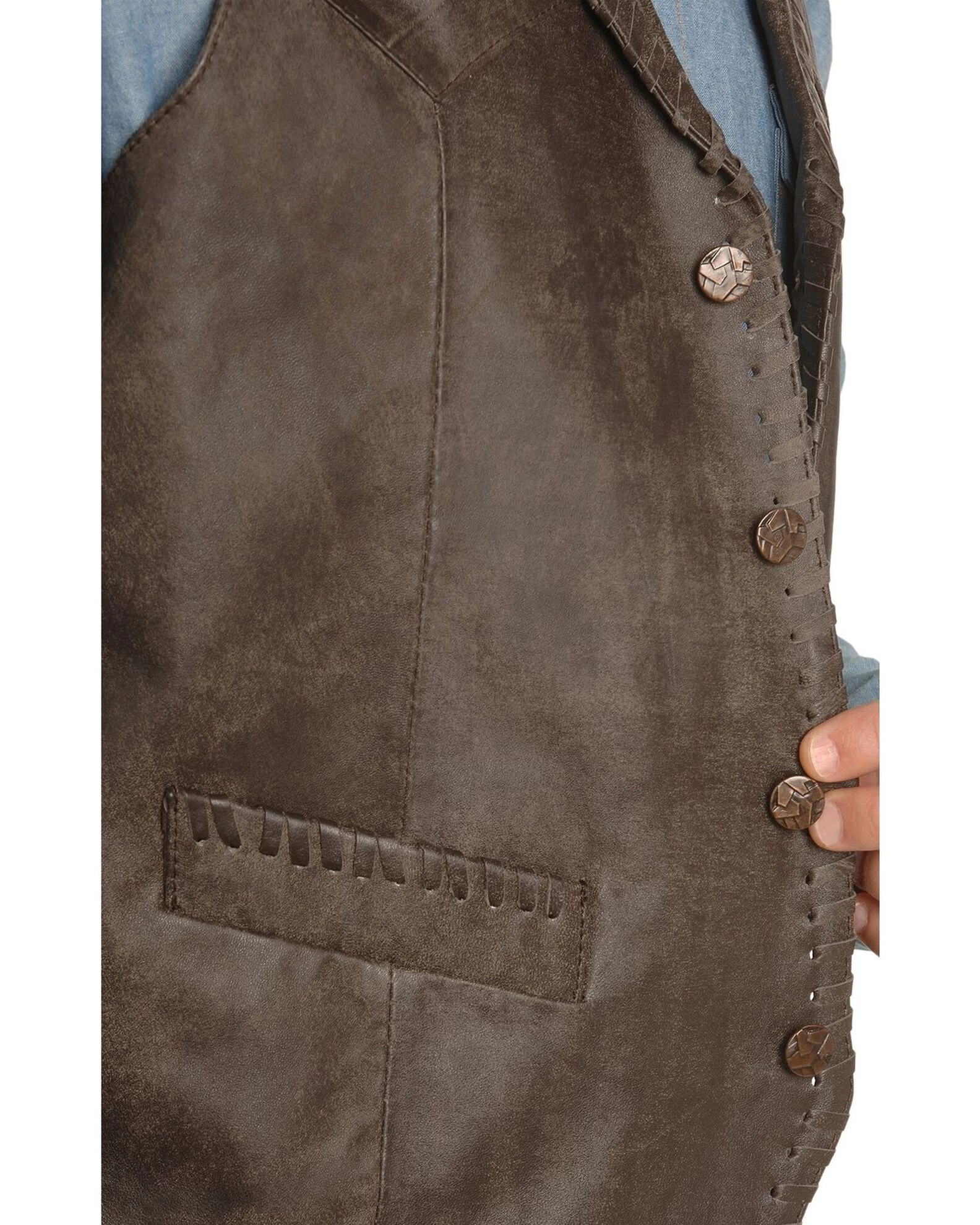 Scully has been producing the finest leather products since 1906. This Scully Men’s Whipstitch Leather Lapel Vest mixes the old west with contemporary fashion. Made out of high quality imported leather and acetate lined, this vest has a snap up closure with whipstitch treatments, giving it an authentic Western feel. The two front pockets and one inner pocket make this vest functional in addition to its stylish features. Put this vest on over your favorite dress shirt and you’ll be the fanciest cowboy on the ranch.