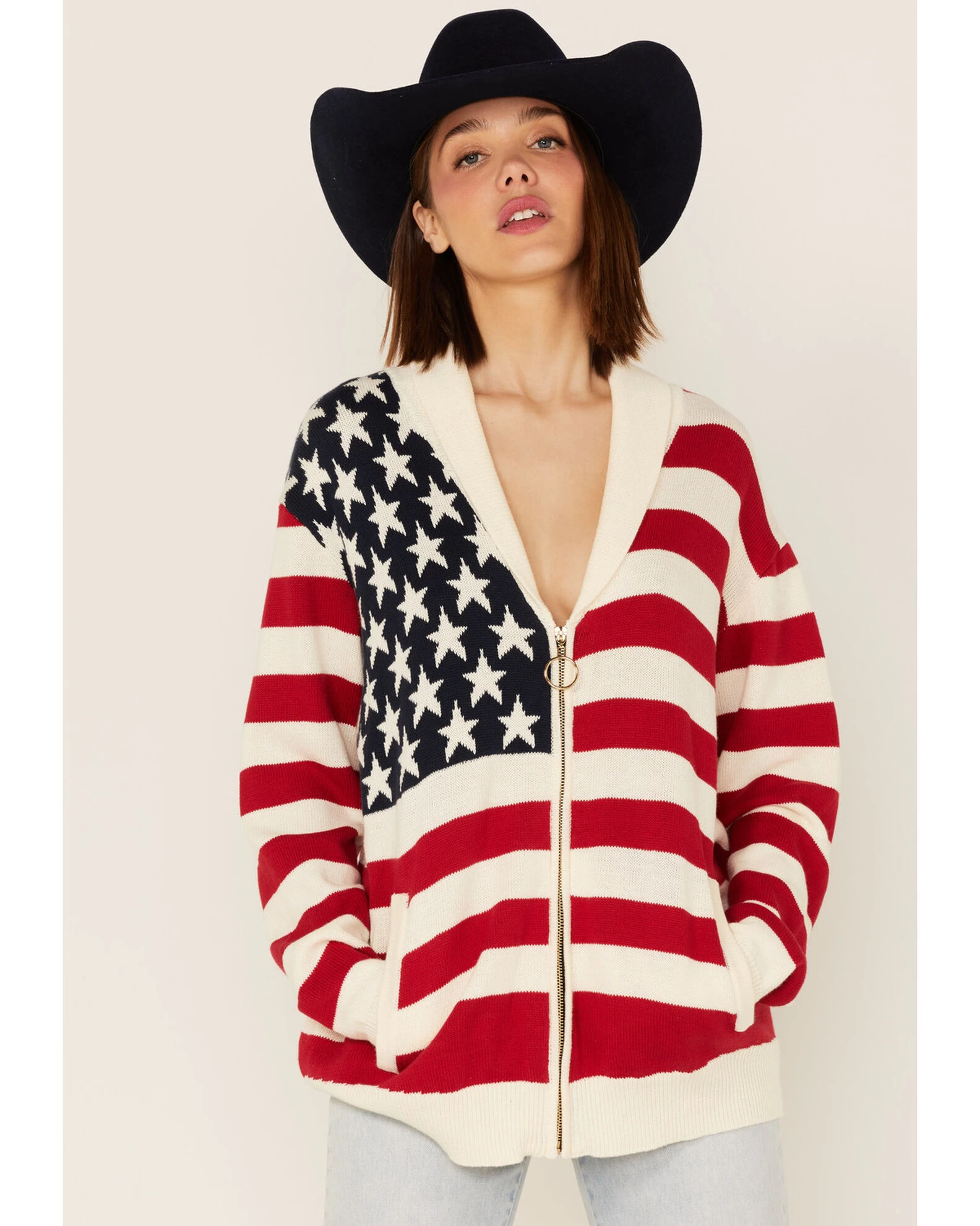 Show Me Your Mumu Women’s American Flag Knit Cardigan Sweater