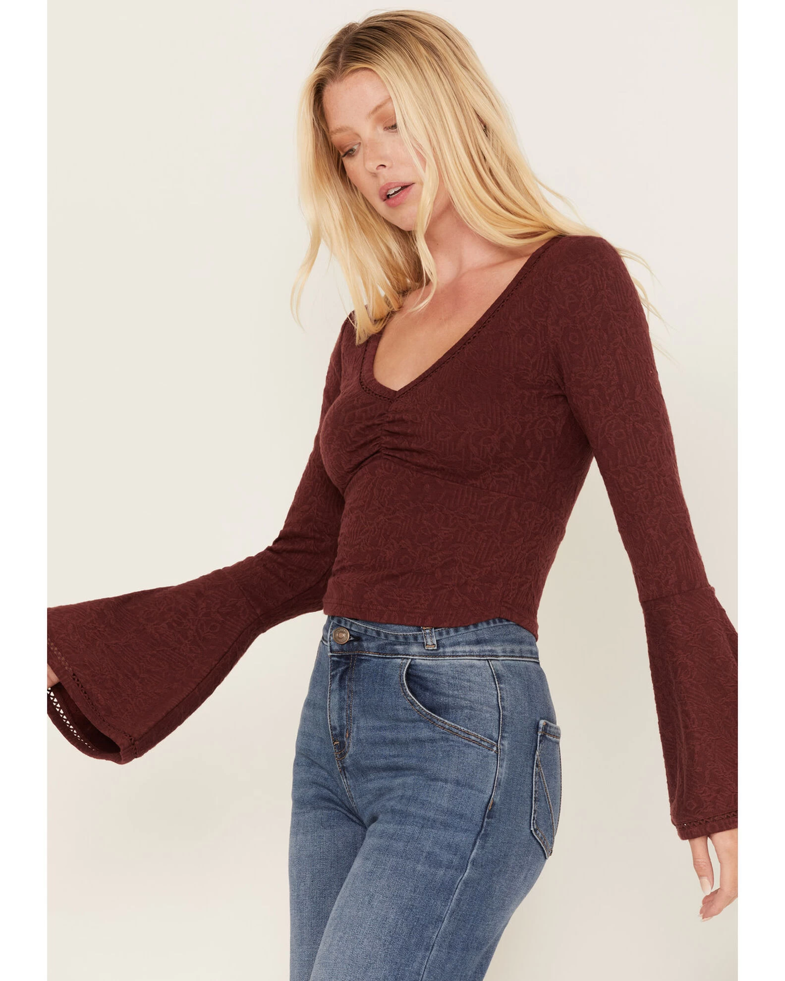 Shyanne Women’s Deep V-Neck Bell Sleeve Crop Top
