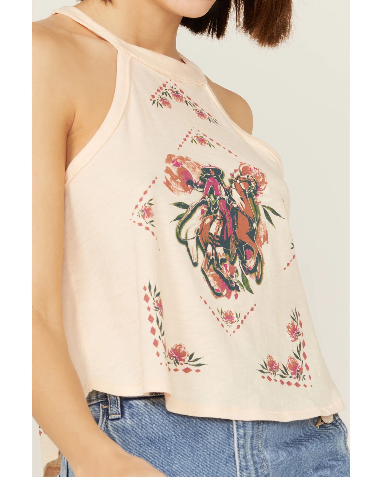 - Front bronco riding female floral graphic print