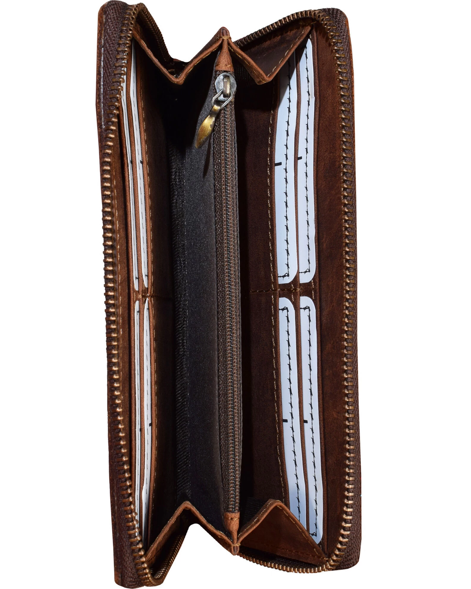 Keep your money and other valuables safe when you have this wallet from STS Ranchwear. This wallet is made with distressed leather and features 2 bill slots, 2 open pockets, 1 zip change pocket, and 8 card slots. You will have plenty of room for all your currency essentials with this wallet from STS Ranchwear.