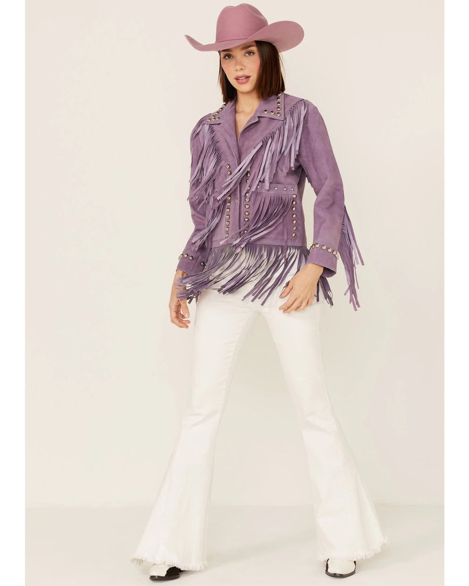 Understated Leather Women’s Howdy Fringe Studded Moto Jacket