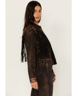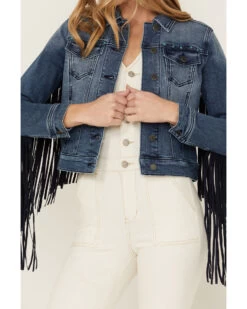 Idyllwind Women’s Bisbee Wash Studs Fringe Denim Trucker Jacket