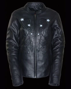 Milwaukee Leather Women’s 3/4 Leather Jacket With Reflective Tribal Detail –Â 4X