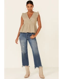 Wishlist Women’s Gucci Eyelet Ruffle Surplice Short Sleeve Babydoll TopĀ