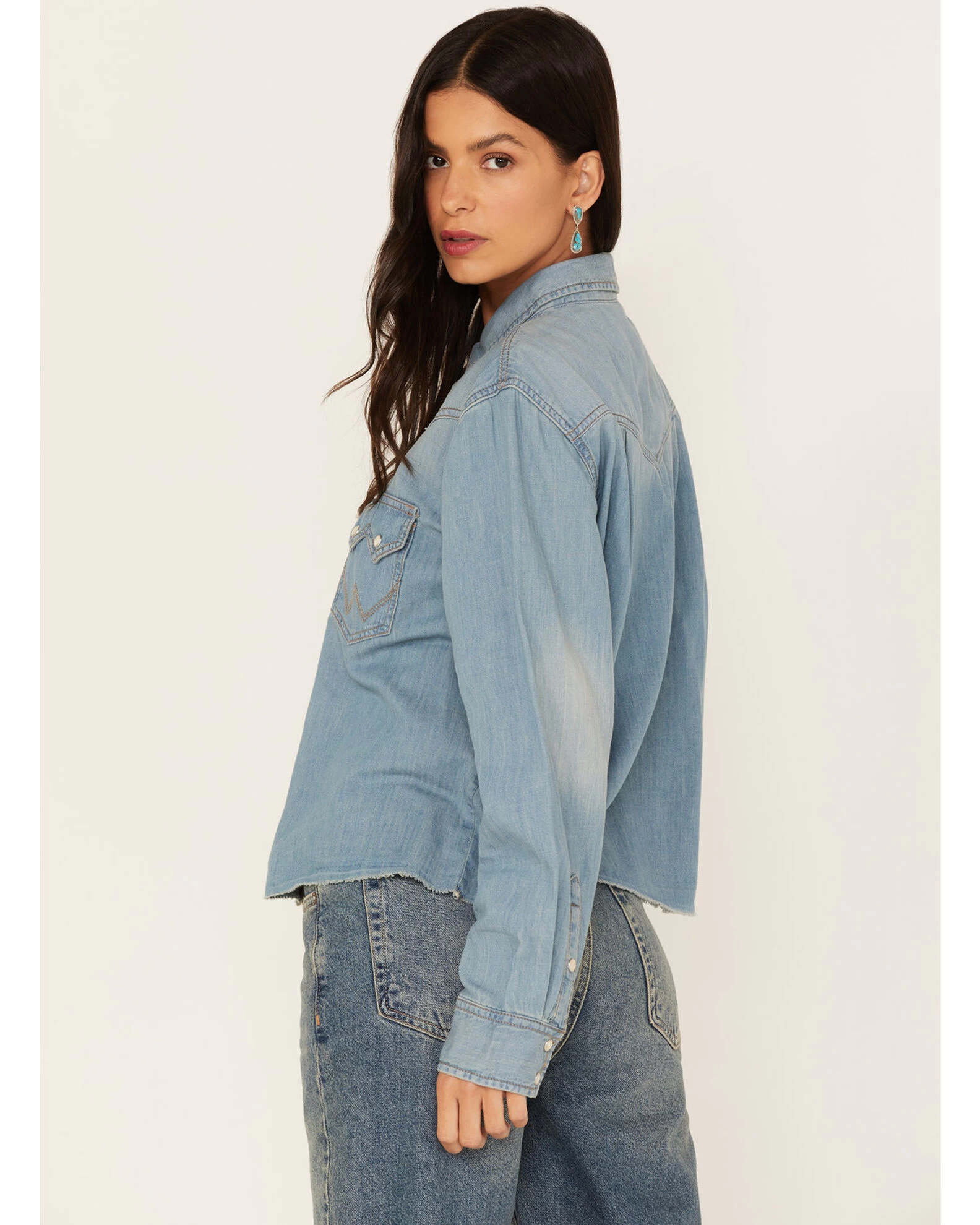 Wrangler Retro Women’s Denim Frayed Long Sleeve Snap Western Shirt