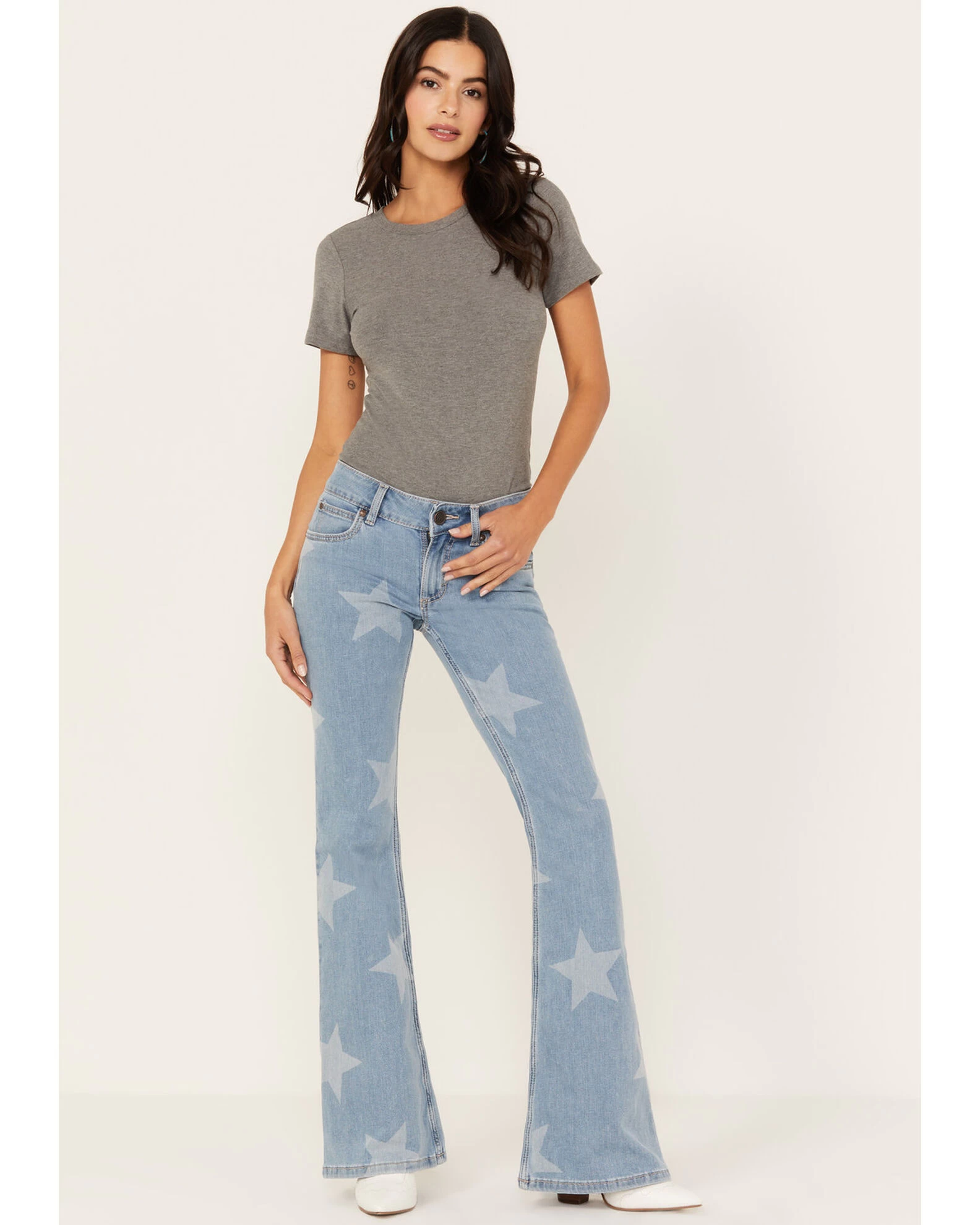 Wrangler Retro Women’s Light Wash Mid Rise Star Print Mae Flare Jeans