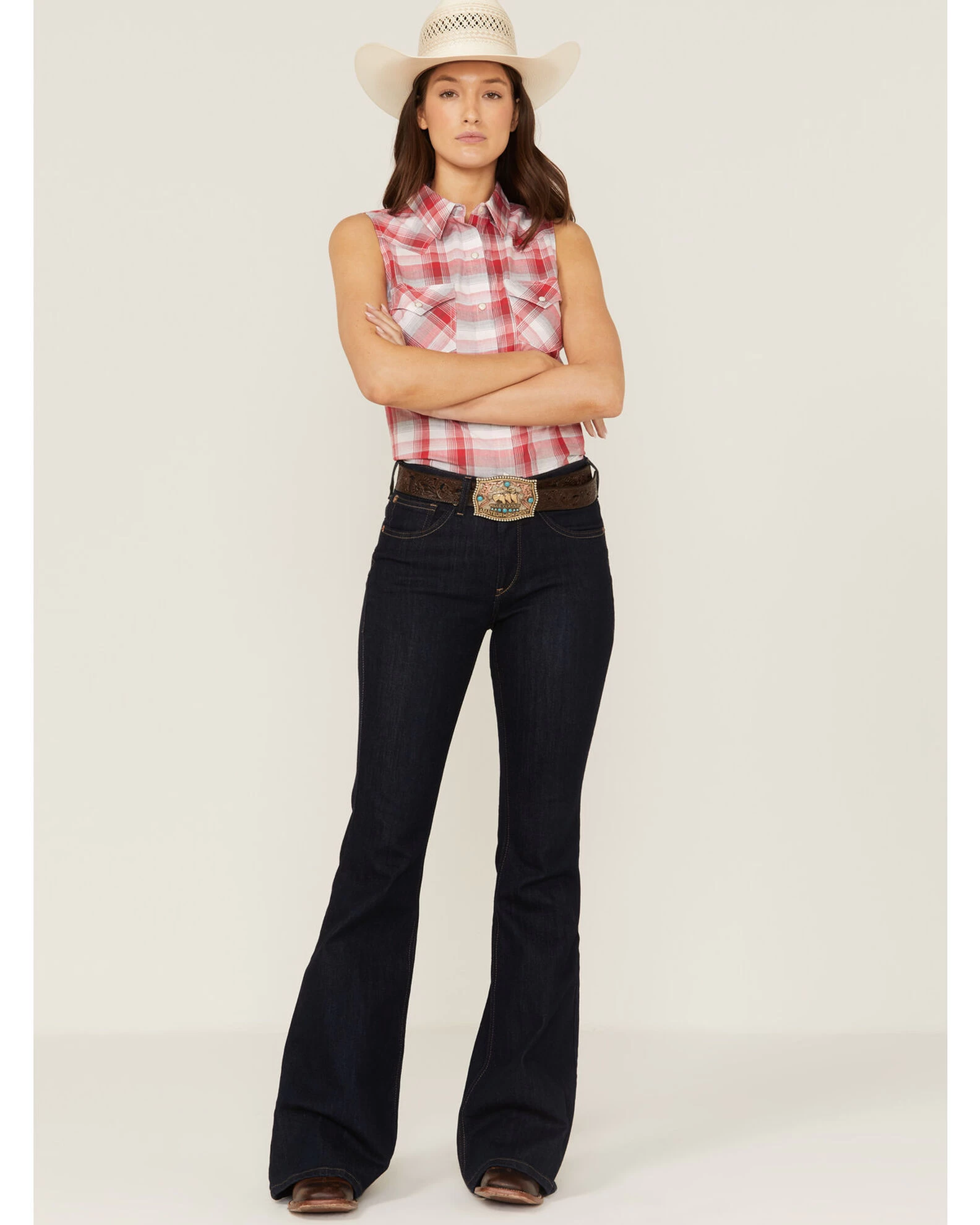 Wrangler Women’s Americana Plaid Print Sleeveless Western Snap Shirt